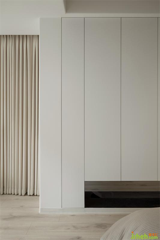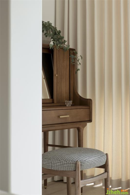 寬敞的主臥由梳妝空間及徒手健身空間組成 ,NORHOR的胡桃木梳妝臺(tái)留下了女主人描眉梳妝的美好記憶。