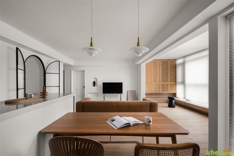 房屋位于頂樓,視野優(yōu)勢從拆除部分墻體后的玄關(guān)隨之突出,窗外也無遮擋物,視野自然隨之開闊,空間也敞亮了許多。