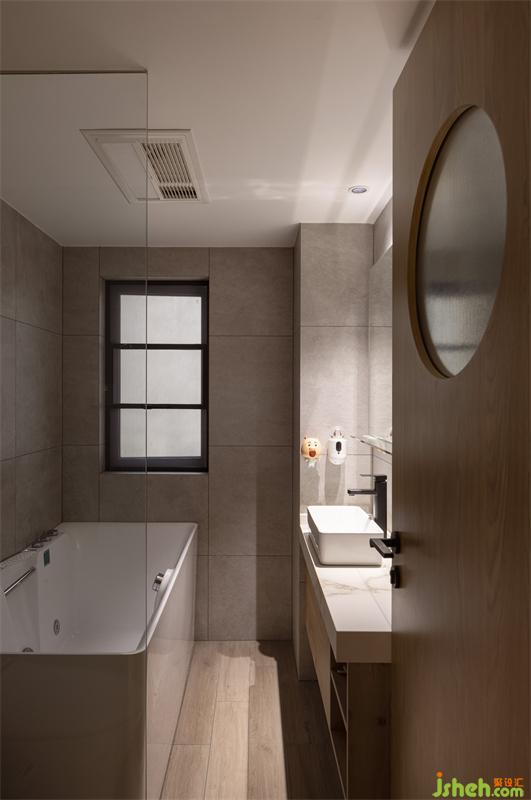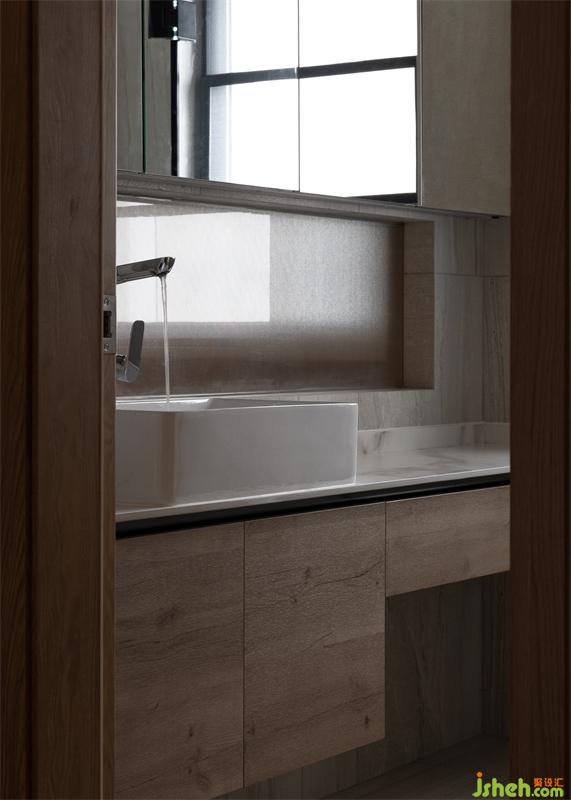 成都家居設(shè)計,在主臥與主衛(wèi)洗手臺隔斷留一扇窗,利用長虹磨砂玻璃的優(yōu)點(diǎn),讓室外的自然光可以緩緩的進(jìn)入室內(nèi),解決因原始房型造成采光不足的情況。