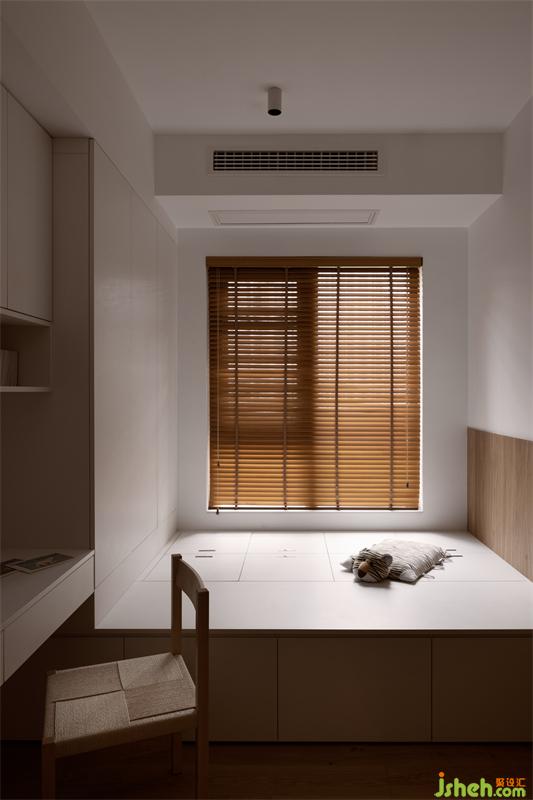 榻榻米房間作為成長性的空間,現(xiàn)階段主要是收納物品及屋主辦公。孩子年紀(jì)稍大些時,再作為兒童房使用。