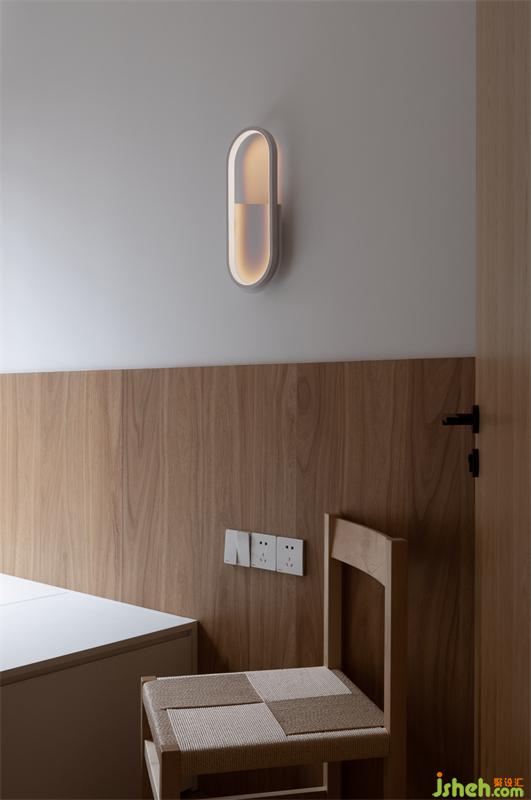 面層為榆木木飾面的吊頂陰角線,在留白的墻面多了一份溫度,與地面的木材恰好呼應(yīng)。