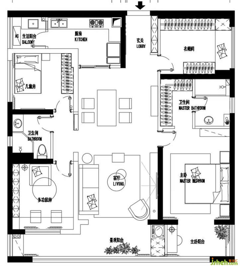 ? 對(duì)房屋的硬裝改造主要對(duì)室外景觀陽(yáng)臺(tái)區(qū)域的納入與分割,重組后的陽(yáng)臺(tái)帶給主臥、客廳、多功能室更多的空間