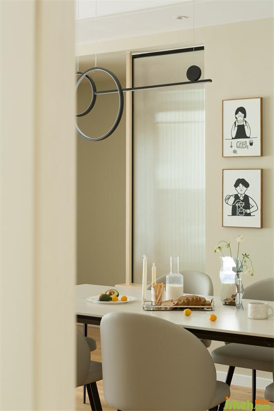 白色石材餐桌與一桌佳肴的碰撞,煙火氣便從柴米油鹽中散發(fā)出來(lái)。黑白男孩女孩頭像掛畫(huà)點(diǎn)綴了光禿的墻面還豐富了小兩口就餐氛圍,掛畫(huà)的內(nèi)容印證著兩人的幸福生活。