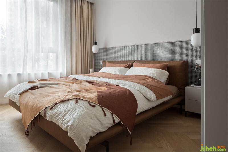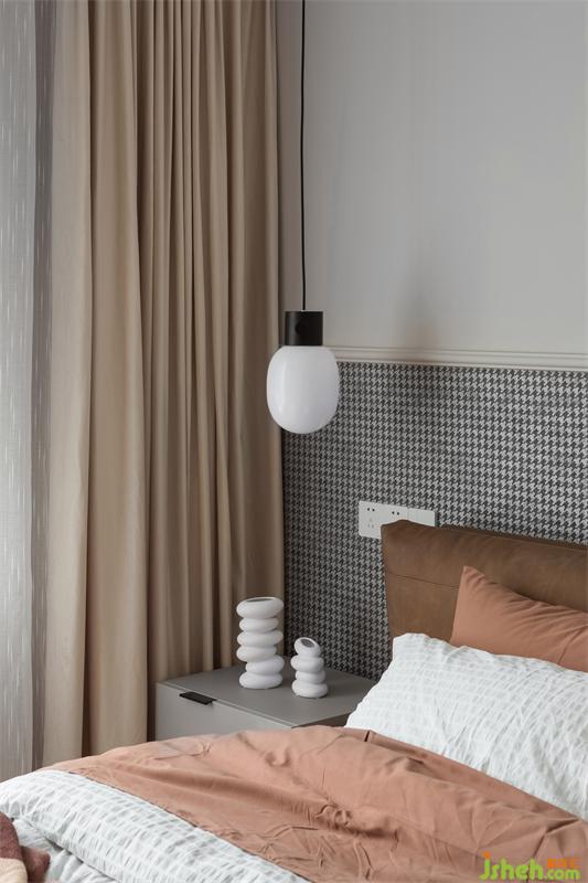 毛呢千鳥格紋背景墻呈現(xiàn)出織物的踏實(shí)質(zhì)感,觸感豐富溫暖,同時(shí)增添空間肌理。