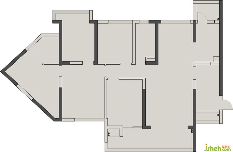? 多功能房墻體內(nèi)拓,使過道區(qū)域一側(cè)可安裝一組家政柜,增加過道的使用價(jià)值。