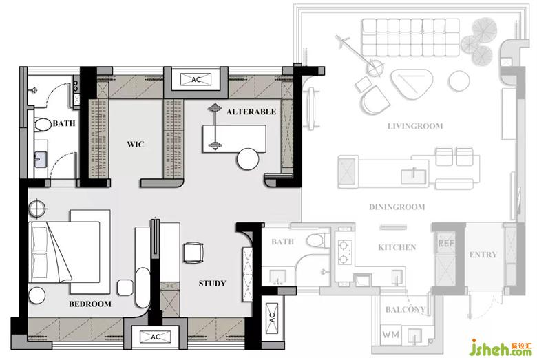 房間與人員配比的過剩,將「私密」區(qū)域的四間房間改為一室,為屋主提供極佳的通透順暢感。