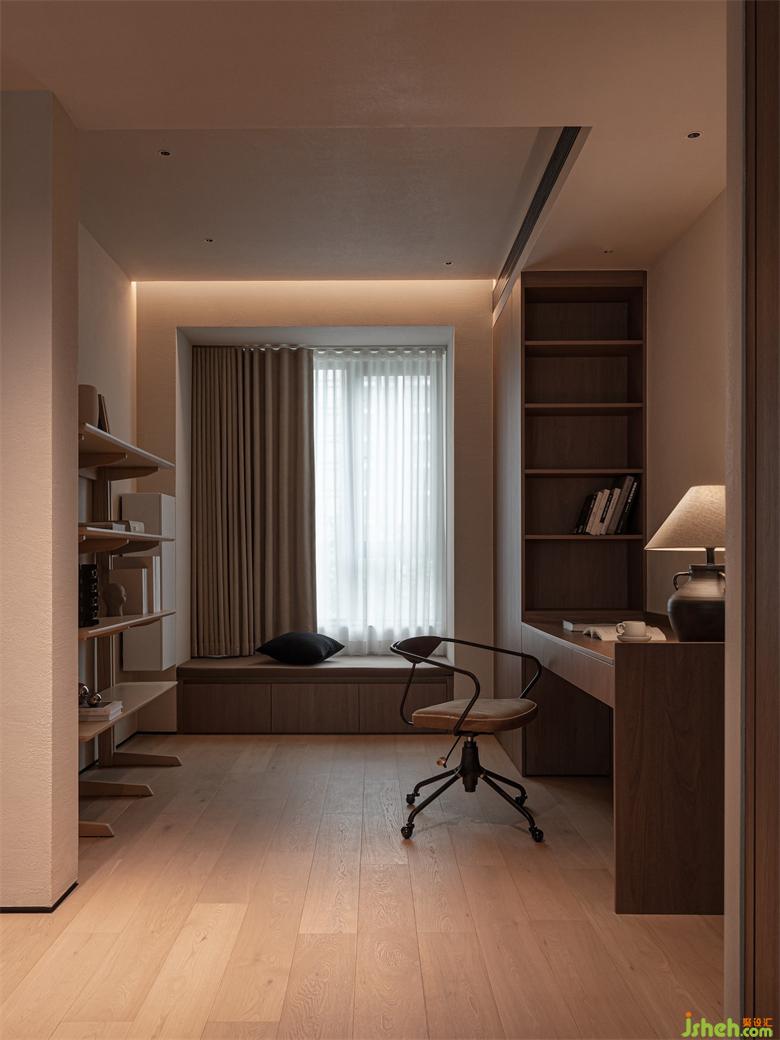 而走廊的另一側(cè),是提供給屋主辦公、看書的書房空間。
