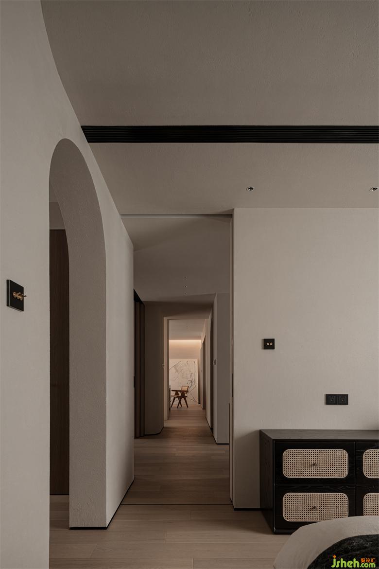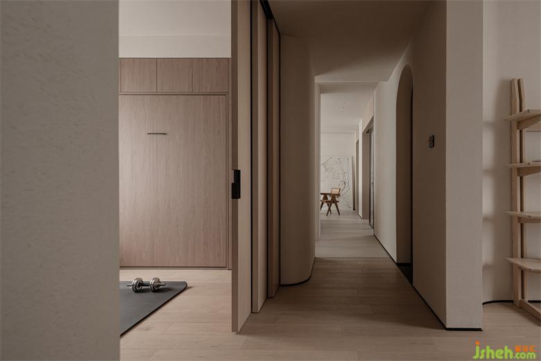 如今走廊兩側(cè),不再是冰冷厚實(shí)的墻面,成都家裝設(shè)計(jì)取而代之的是兩間功能區(qū)域隔廊相望。