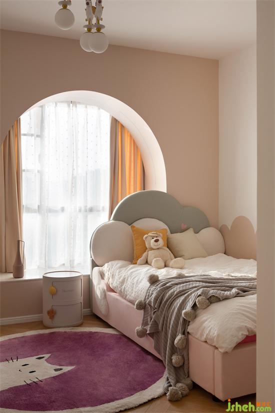 家裝設(shè)計拱形門洞和拱形衣柜交相呼應(yīng),無論是飄窗、還是裝了燈的衣柜,都成了小朋友看書、玩耍的私人領(lǐng)地。