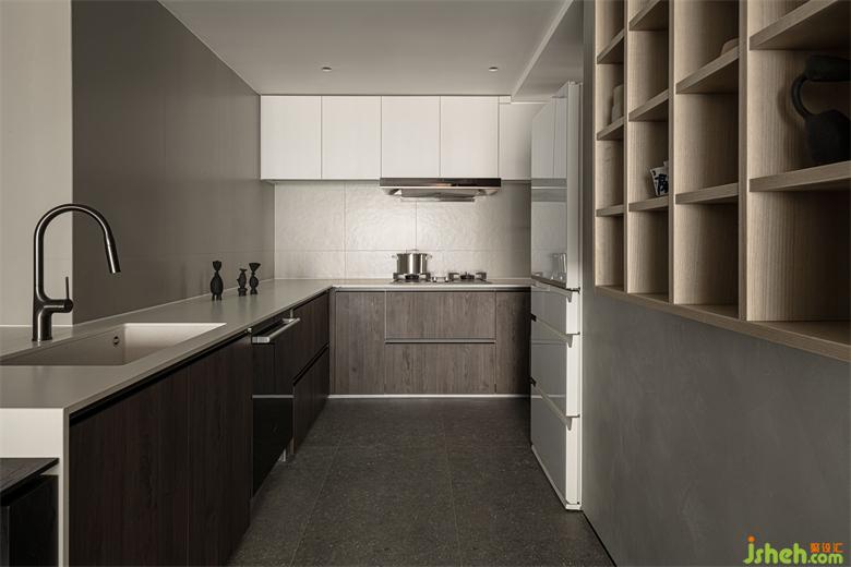 ?. 廚房改成開(kāi)放式的中西廚,一方面是符合屋主對(duì)開(kāi)放式廚房的喜好,一方面擴(kuò)大廚房面積,烹飪功能更完備、就餐便捷,加強(qiáng)空間縱深感
