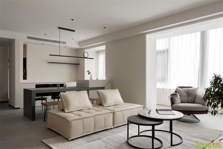 ?. 原本的玄關位置能夠一眼看到客廳,家裝設計師在玄關、客廳設計了墻面隔檔