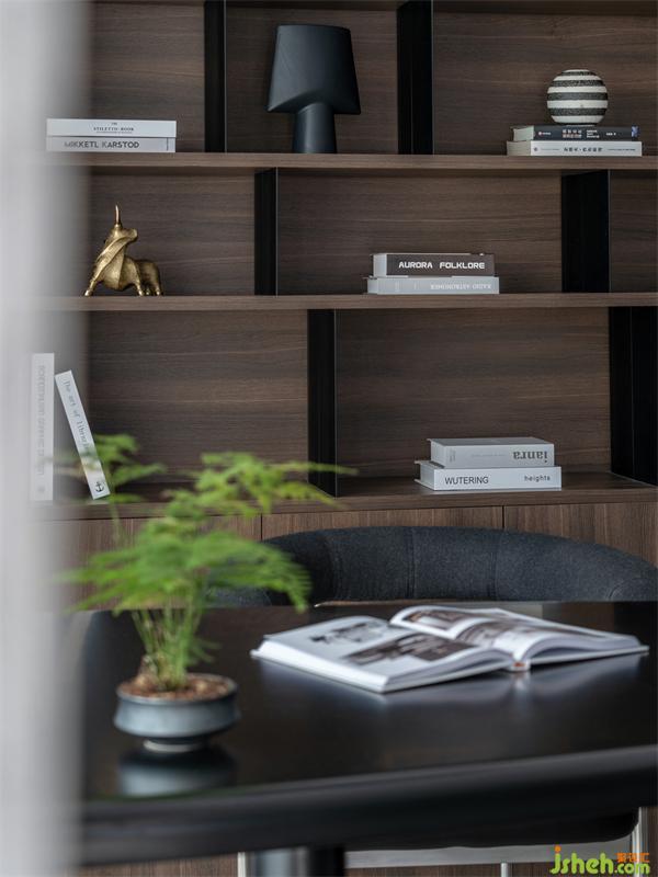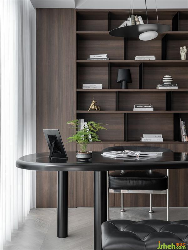 書房的家具搭配主要以黑色為主,沉穩(wěn)的配色可以讓空間更加大氣,也有助于安靜的思考。收納式書架,即方便又實(shí)用 ,暖色的燈帶將書房氛圍柔化得恰到好處。