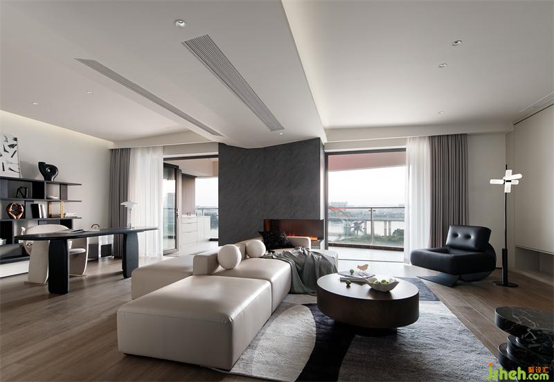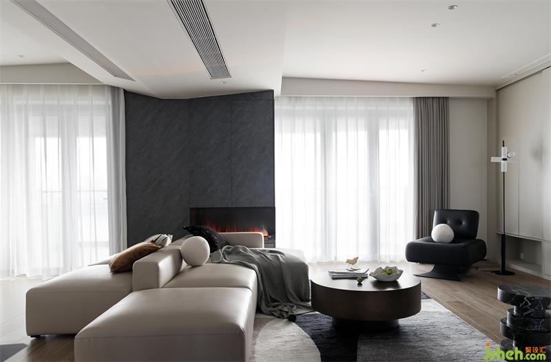 沉穩(wěn)厚重的煙熏色茶幾與高級灰絨面地毯結(jié)合,為整個客廳鋪墊一層溫馨的基調(diào)。