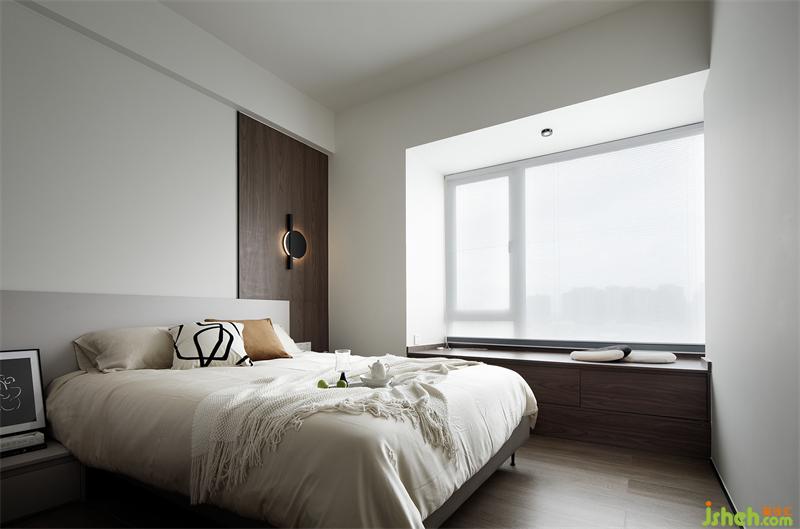 次臥在靠窗的位置定制集休閑+收納功能于一體的飄窗柜,既豐富了空間使用方式,也增加了收納空間。