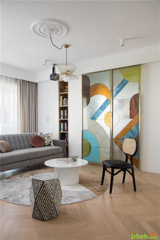 法式裝修設(shè)計(jì)沙發(fā)和休閑椅都以屏風(fēng)為中心圍合式擺放,配以抽象風(fēng)格的地毯,完美的和彩繪的玻璃屏風(fēng)形成視覺(jué)的連通,讓屏風(fēng)在關(guān)閉的時(shí)候成為空間最美麗的風(fēng)景。