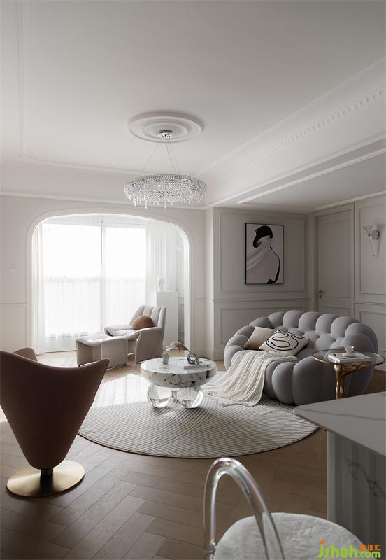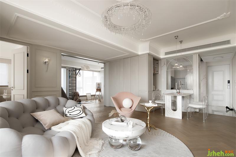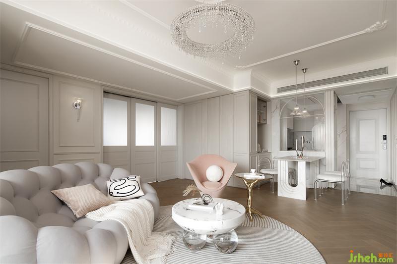 局部點綴的粉色酒杯單椅讓女性的優(yōu)雅氣息融入居住空間內(nèi),柜門的把手也采用了同樣的粉色來與單椅呼應(yīng),法式藝術(shù)設(shè)計讓裸色的氛圍瞬間變得甜蜜而夢幻,細小的東西往往容易被人忽略,卻也最容易溫暖居住者的內(nèi)心。