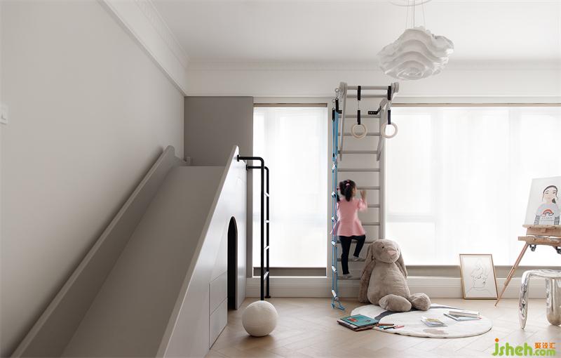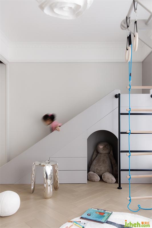 將原本兩個(gè)小的房間打通后改造成一個(gè)大的房間作為兒童游樂區(qū)域,滑梯 吊環(huán) 大空間 無限的奔跑是小朋友肆意快樂的童年。
