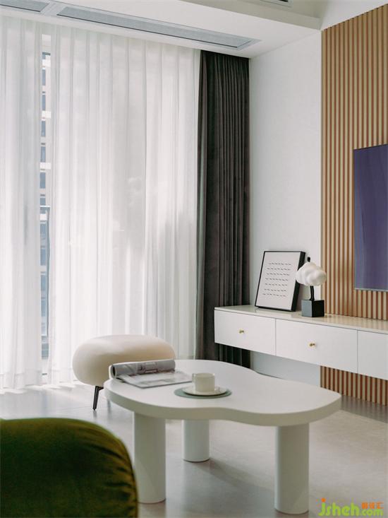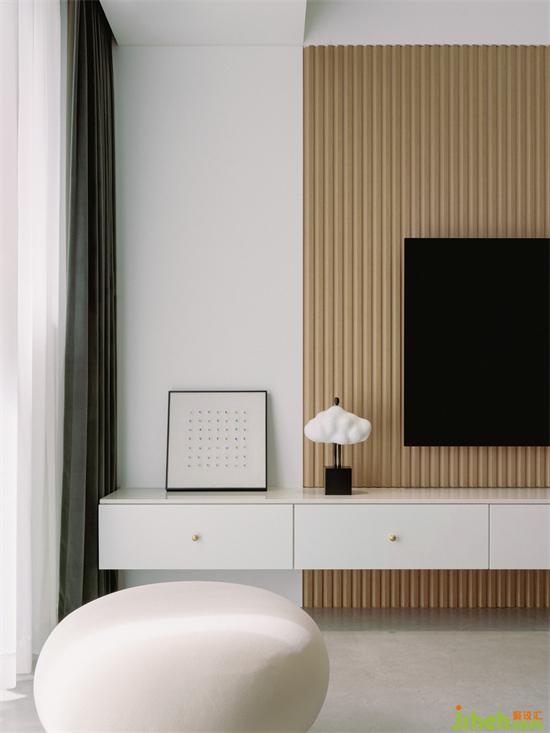 客廳電視背景墻用優(yōu)雅的淺咖色長城板營造空間秩序感,搭配白色的懸空電視柜,家裝設(shè)計(jì)讓空間變得靈動(dòng)有層次。