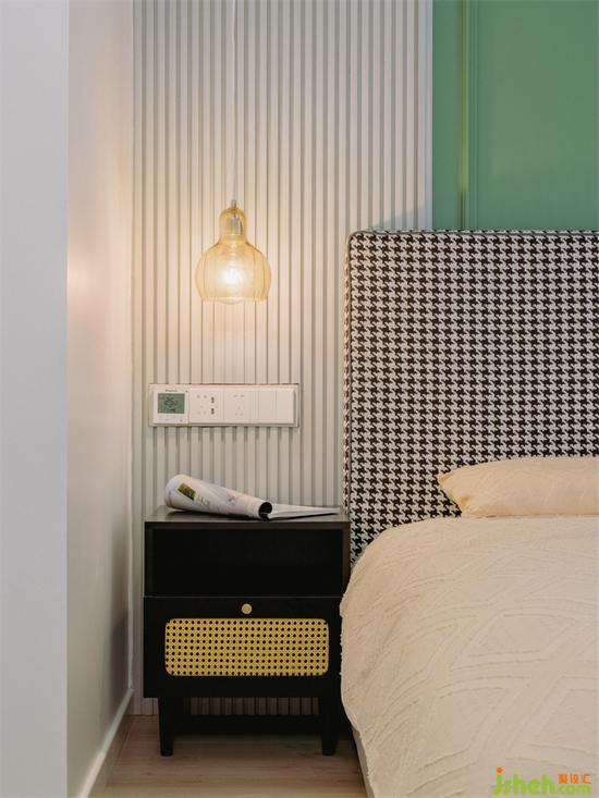 經(jīng)典永恒的千鳥(niǎo)格紋床頭靠背,讓時(shí)尚腔調(diào)不彰自顯,配上簡(jiǎn)約的玻璃吊燈,讓空間更有質(zhì)感。