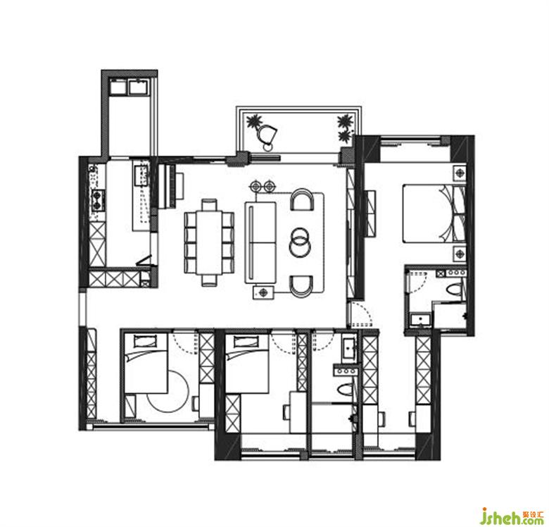 02客餐廚一體化設(shè)計(jì),讓寬敞的客廳不至于太過空曠,生活動(dòng)線舒適;
