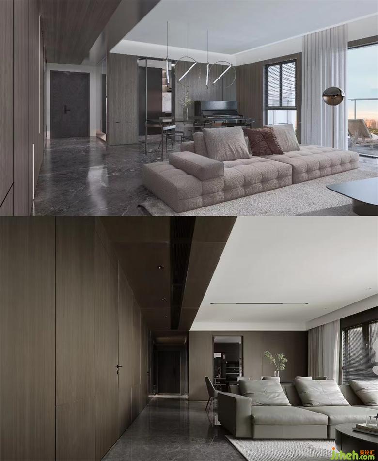 本案的家裝設(shè)計(jì)靈感來源于業(yè)主喜歡的深色系,在暗黑色調(diào)中構(gòu)思出每個(gè)空間的場(chǎng)景,從而讓我們?cè)谏钌档拇钆渖?,體現(xiàn)不常見的空間獨(dú)有層次。雖然初次合作,但是業(yè)主夫妻對(duì)我們十分信任,這個(gè)特點(diǎn)讓我們?cè)O(shè)計(jì)1:1完美落地得到最大保障。