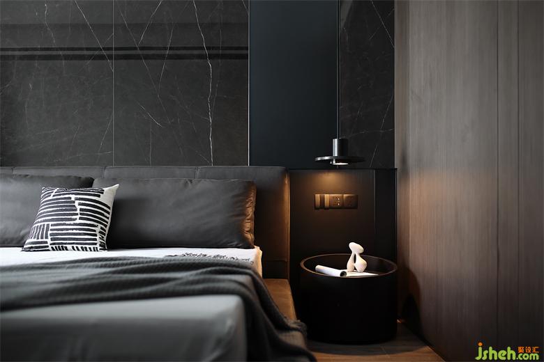 床頭溫馨一角~白天是清冷高級的暗黑風,夜晚開燈之后柔和愜意瞬間涌上心頭,家裝設(shè)計舒適助眠。