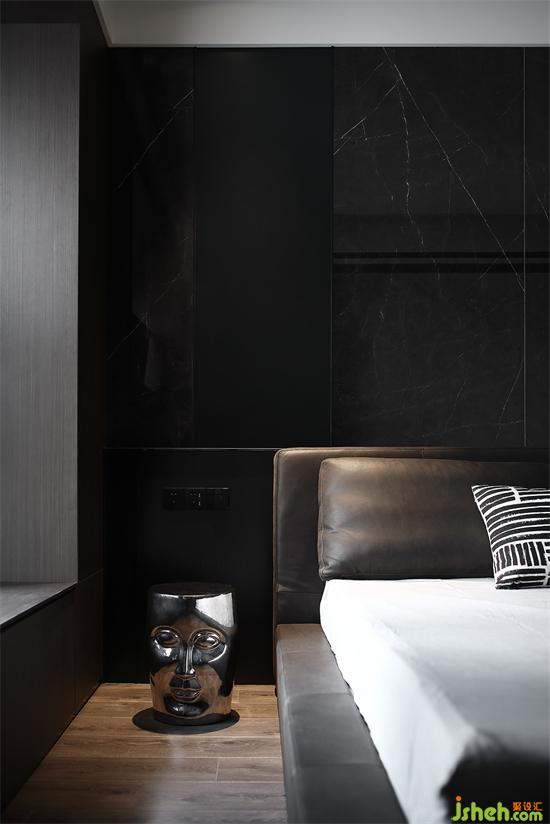 床是提前選好的,與背景墻高度完美契合,家裝設(shè)計摒棄笨重床頭柜,選擇時尚別致的邊幾代替,皮質(zhì)床頭與不銹鋼的碰撞,角落里的精致也不放過。