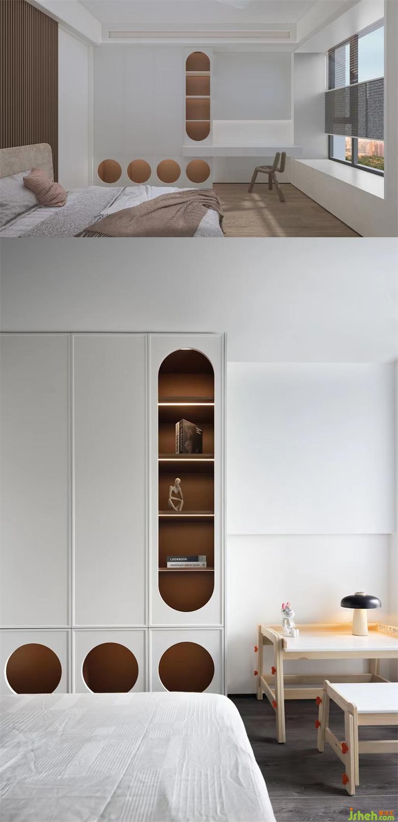 兒童房從全屋風格里抽離,奶油白為主色調(diào),更加符合兒童喜好。床周用軟墊包裹,家裝設(shè)計防止磕碰且睡眠更有安全感。