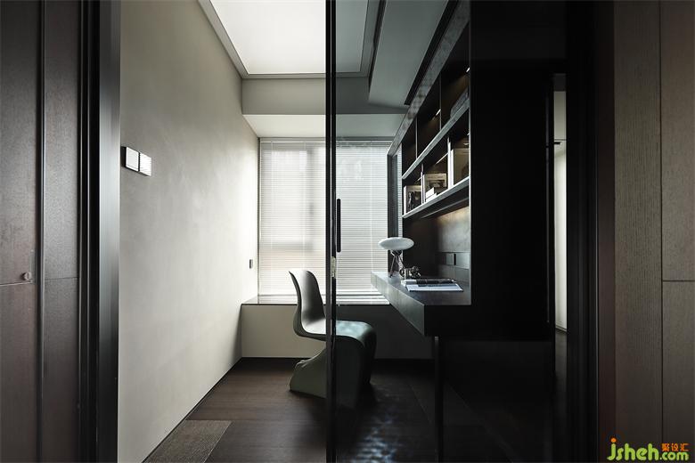 書(shū)房被外衛(wèi)借用了部分區(qū)域,剩下的部分雖小卻也夠用,獨(dú)立空間安靜舒適,玻璃推拉門(mén)隔斷,灰黑色與整體更加協(xié)調(diào)統(tǒng)一,家裝設(shè)計(jì)且不會(huì)影響走廊采光。