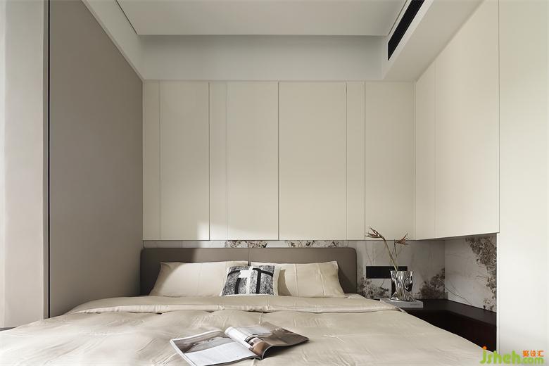 次臥空間有限,嵌入一張雙人床后所剩無(wú)幾,家裝設(shè)計(jì)將床頭柜延伸進(jìn)衣柜區(qū)域,視覺(jué)上更加寬敞。一體式墻面設(shè)計(jì),流暢且連貫,小次臥也裝滿(mǎn)了家的品質(zhì)。