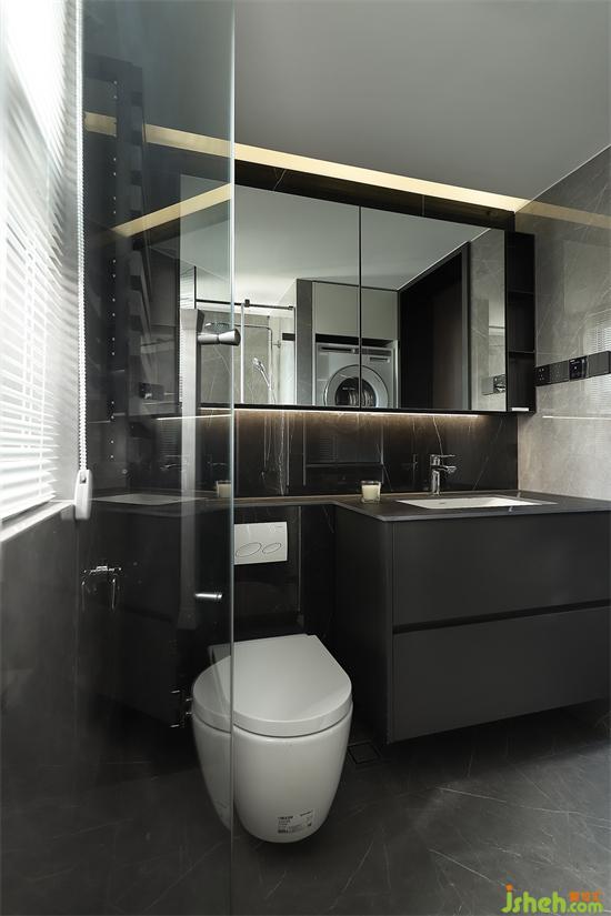 通過(guò)書(shū)房與公衛(wèi)空間比例的調(diào)整,家裝設(shè)計(jì)把原先狹小的公衛(wèi)進(jìn)行豪華升級(jí),獨(dú)立淋浴間、家政洗衣區(qū)、干區(qū)洗漱臺(tái)應(yīng)有盡有,極盡創(chuàng)造高品質(zhì)便捷生活。