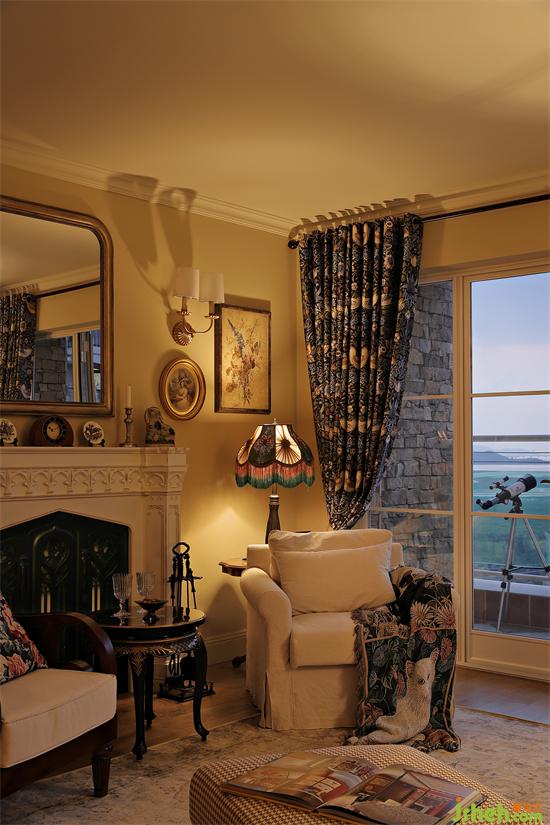 站在陽臺縱覽整個公區(qū),硬裝簡潔大氣,軟裝豐富且協(xié)調(diào),處處呼應(yīng),客廳整體布局隨性不刻板,沙發(fā)椅對稱而置,深圳金地翠堤灣家裝設(shè)計以壁爐為空間重心,形成圍爐而坐的氛圍,再次將英倫風(fēng)情突出刻畫。