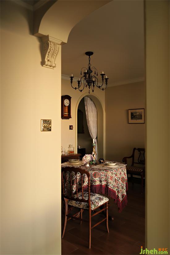 為了不影響整體層高,全屋硬裝自然簡潔,墻頂走一圈5cm石膏線,深圳金地翠堤灣家裝設(shè)計展現(xiàn)英式風(fēng)格的單線條美感,門框處也只是簡單包邊。從動區(qū)到靜區(qū)的走廊,我們做了一些獨特的設(shè)計,區(qū)分入戶的拱形,避免重復(fù)單調(diào),進出之間多了一份儀式感。