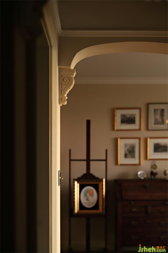 拱形設計搭配雕花梁托,自然光影沉穩(wěn)靜謐,頗有電影般的故事感,又仿佛藝術館的角落,讓人浮想聯(lián)翩。