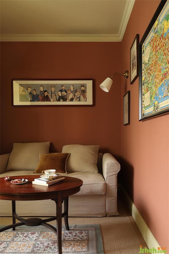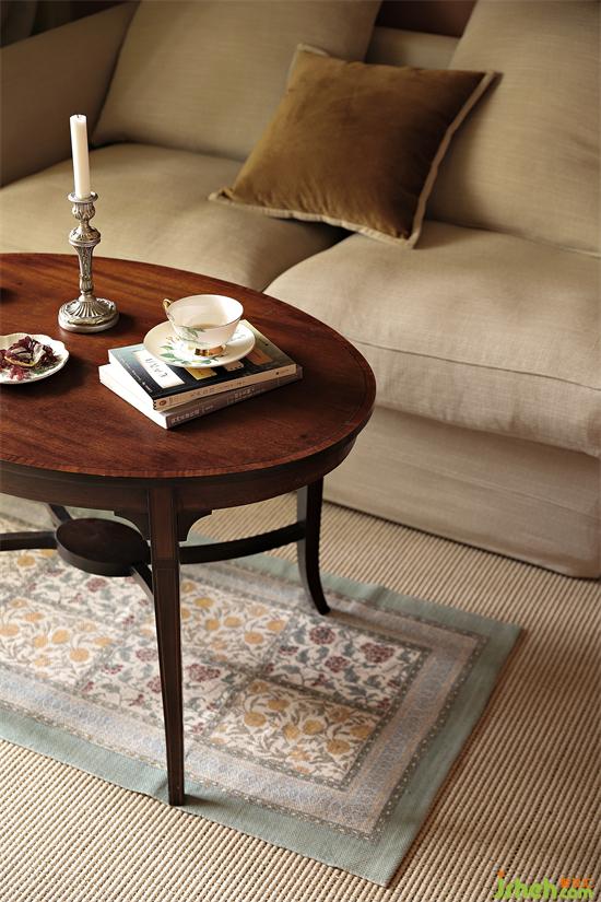 中古茶幾搭配一張碎花地毯,加強地面層次感,家裝設計精致的布置再一次彰顯屋主的生活格調,以及對生活的熱愛。