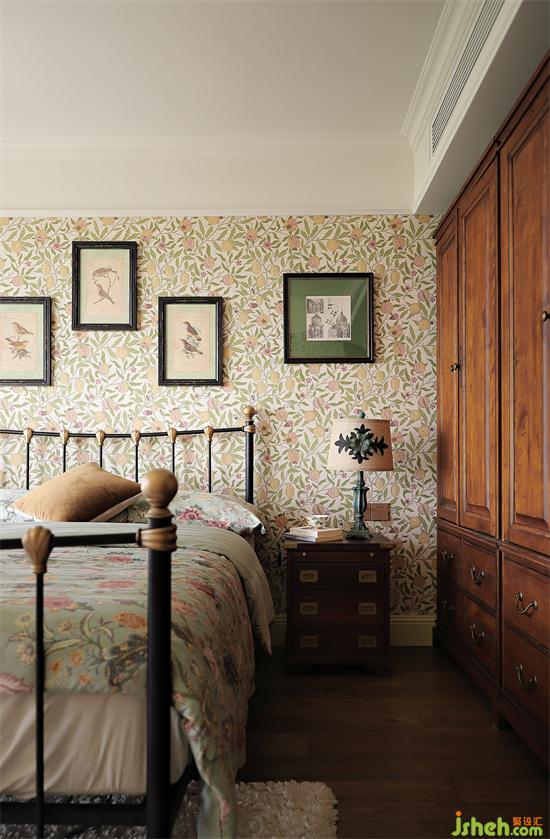 鐵藝床架采用黑金配色,復(fù)古中帶著一絲時尚,床頭臺燈也是精心搭配所選,布藝燈罩搭配刺繡花卉,深圳金地翠堤灣家裝設(shè)計與臥室風(fēng)格相得益彰,整體呈現(xiàn)的精致效果像電影布景,每一幀都是細(xì)節(jié)。