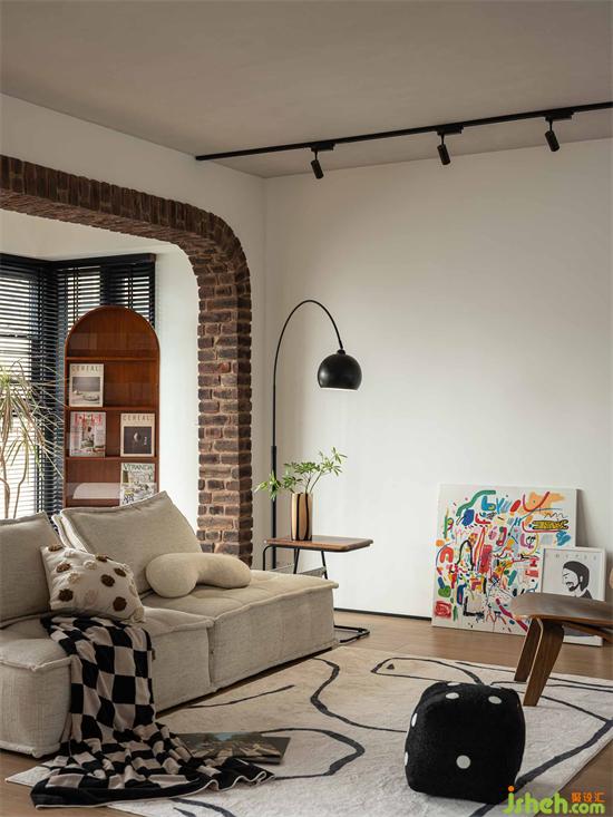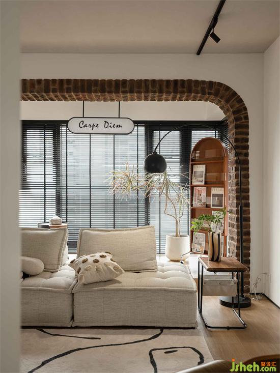 進門第一視角。本案汲取了北歐風的一些實際要素,摒棄傳統(tǒng)的北歐做法,深圳南山東關樂尚林居家裝設計將鐵藝屏風、拱門、紅磚墻等等這些元素與現(xiàn)代簡約相結合,實現(xiàn)材料的多元化運用,整屋氛圍更加靈動自由。