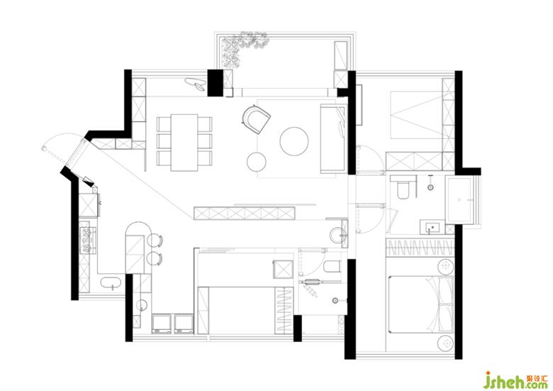 ?客餐一體,陽臺設置為地臺,公區(qū)更加隨性舒適;
