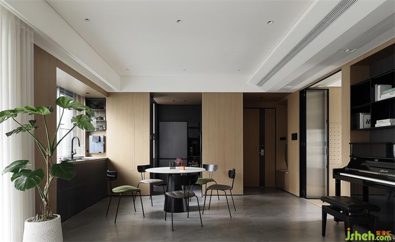 比起常規(guī)的方桌,圓桌更能展現(xiàn)家庭的融洽溫馨,黑色底座搭配輕薄巖板臺面,白與黑的時尚配色,完美呼應(yīng)全屋色調(diào),共創(chuàng)極簡氣質(zhì)的空間氛圍。