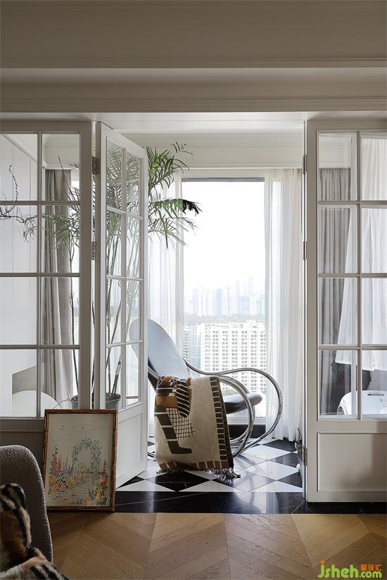法式復古玻璃門連接陽臺區(qū)域,奶白配色輕盈溫柔,法式的優(yōu)雅中多了幾分治愈感,家庭氛圍令人沉溺,舒緩放松。