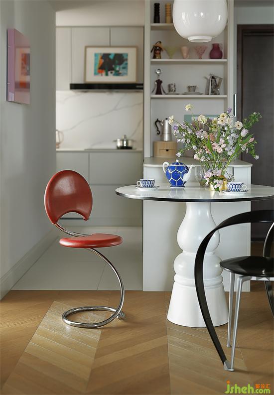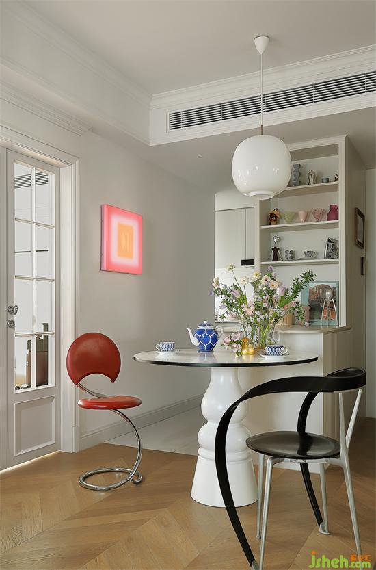 空間白色為主、小面積彩色為輔的配色比例,在碰撞張力中鋪墊了高雅基調(diào),更能襯托出每一處設(shè)計(jì)的巧思。