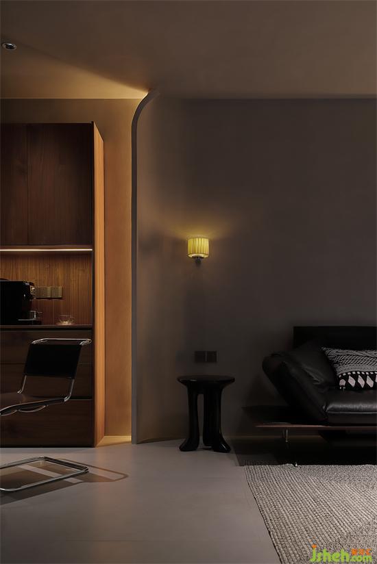 ? 深圳首地容御豪宅設(shè)計(jì)弧形墻面造型、微水泥、線性燈光,呈現(xiàn)質(zhì)感十足美家;