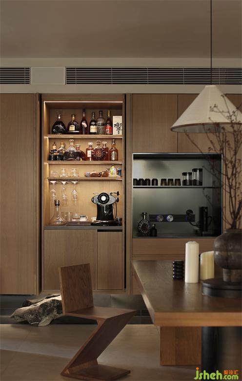 隱藏酒柜的置入,滿足現(xiàn)代生活的多元需求;于客廳一隅,賦予個性悅己的生活方式,開合式設(shè)計,靈活轉(zhuǎn)換空間功能,時光筑造設(shè)計給予生活趣味性和儀式感。