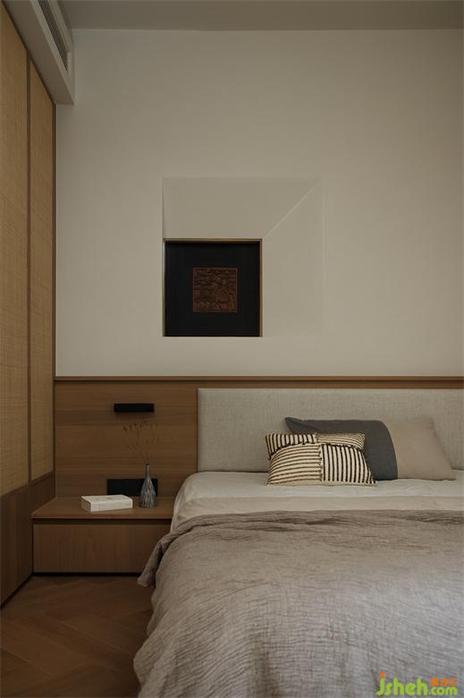 步入主臥,時(shí)光筑造設(shè)計(jì)將侘寂禪意及東方元素有機(jī)結(jié)合,表達(dá)出干凈純粹的生活本真,感受自然棲居的愜意與寧?kù)o。