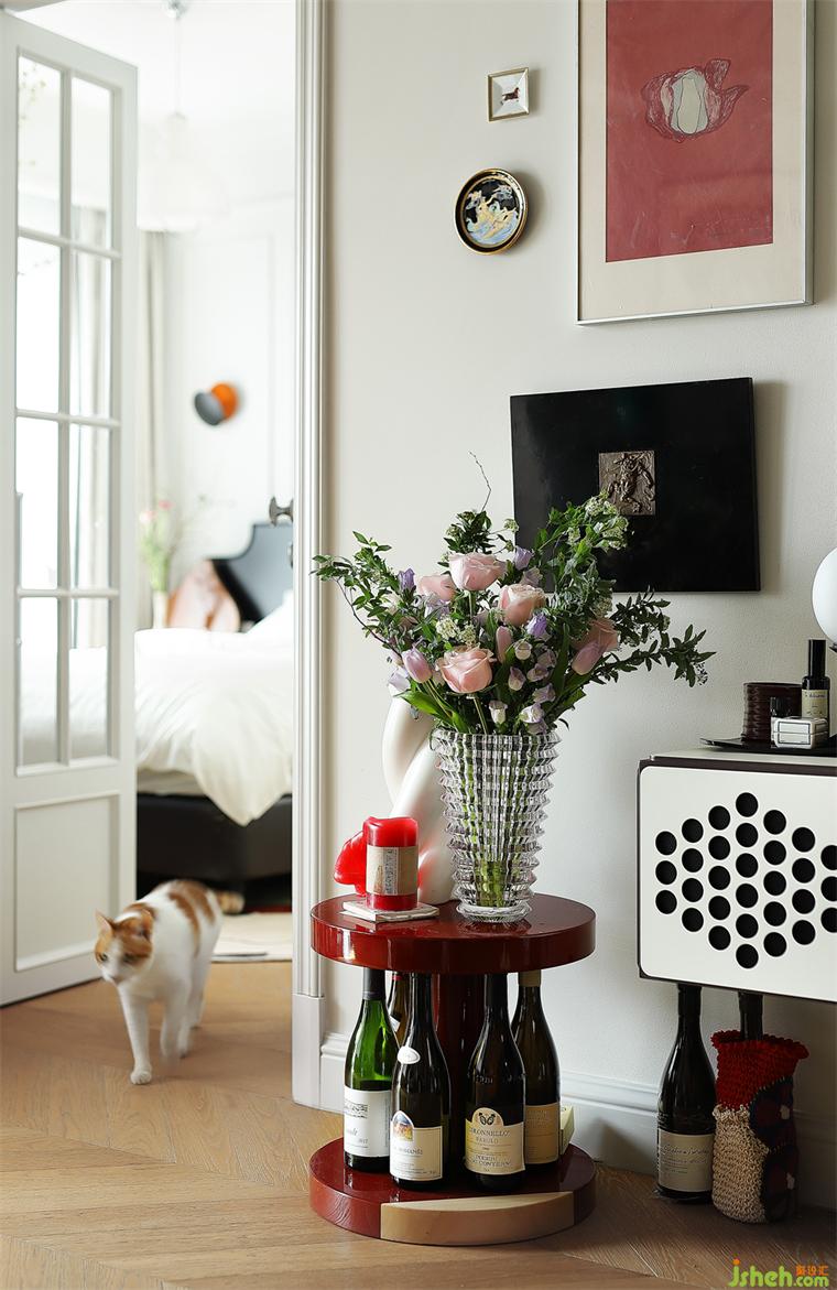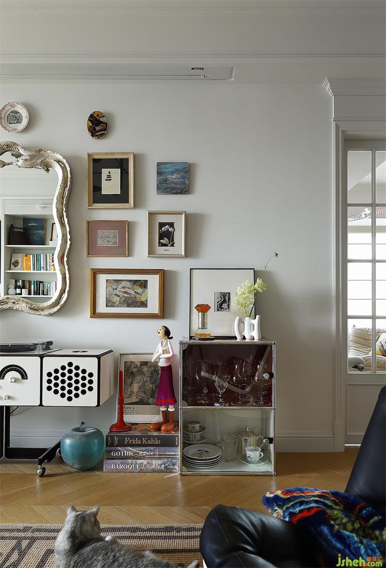 因?yàn)闃I(yè)主自己也是做設(shè)計(jì)相關(guān)的,選擇這種風(fēng)格是因?yàn)樗嗄暝诜▏沁吜魧W(xué)的一個經(jīng)驗(yàn),然后她經(jīng)常住的是法國老公寓,當(dāng)然也希望自己的家也是法國老公寓的這種風(fēng)格;這種風(fēng)格最大特點(diǎn)就是會有法式的基礎(chǔ),通過業(yè)主的職業(yè)特征或者生活習(xí)慣,會添加自己很多的喜好在里面,因?yàn)榉孔硬皇呛艽螅瑯I(yè)主有很多的收藏,最后呈現(xiàn)出來就比較滿一點(diǎn)。