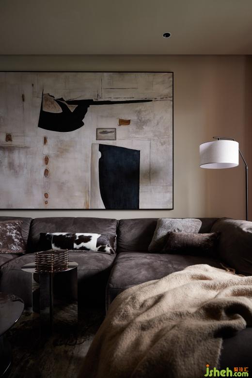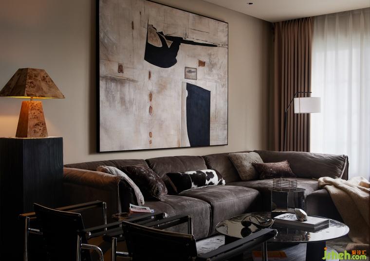 一幅巨大的藝術(shù)調(diào)抽象畫掛在客廳的主墻上,能成為視覺焦點(diǎn),展現(xiàn)主人的獨(dú)特品味。