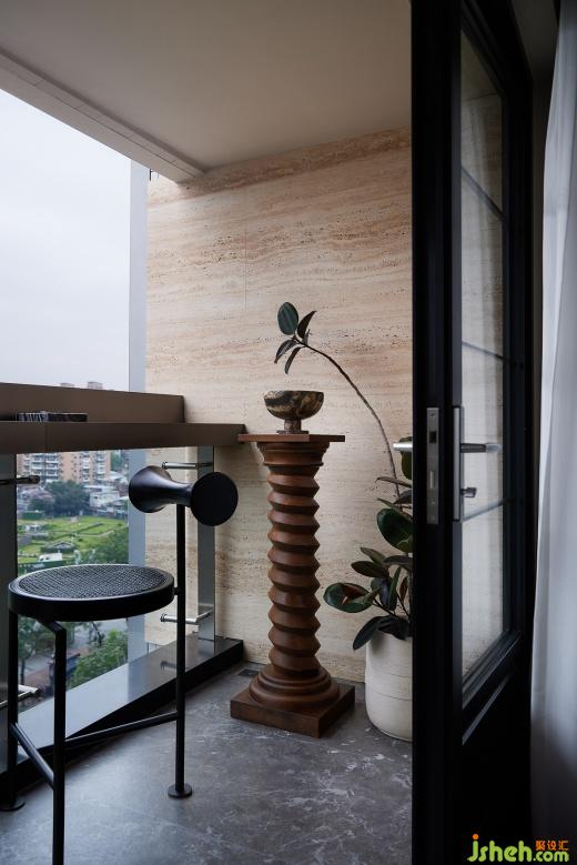 陽臺設計不銹鋼吧臺搭配黑色吧凳,在城市的喧囂中,尋找一片屬于自己的寧靜角落。