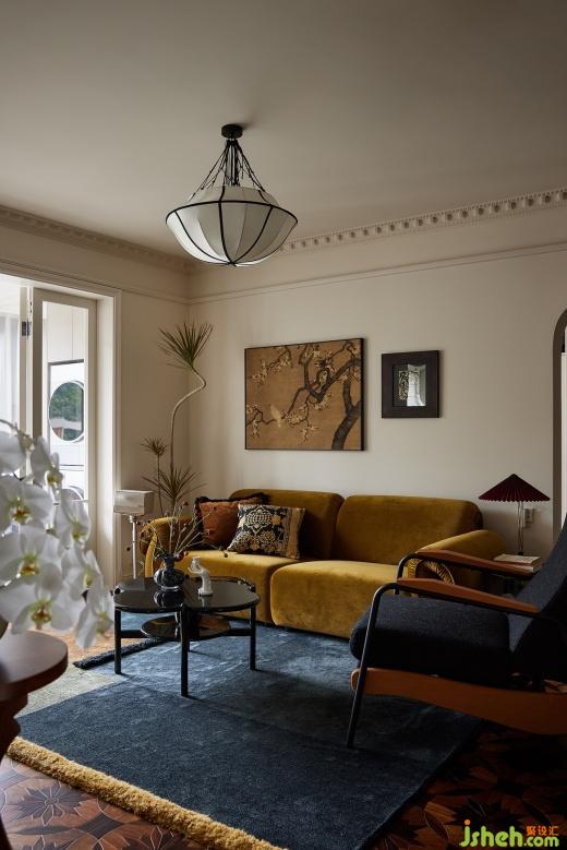 法式與復古美學交織演繹,暖色調(diào)下交融出斑駁光影,午后有人斜倚在沙發(fā)上,目光游離在畫與地毯之間,思緒也漸漸飄遠。