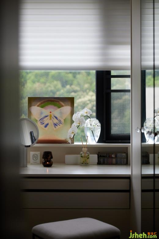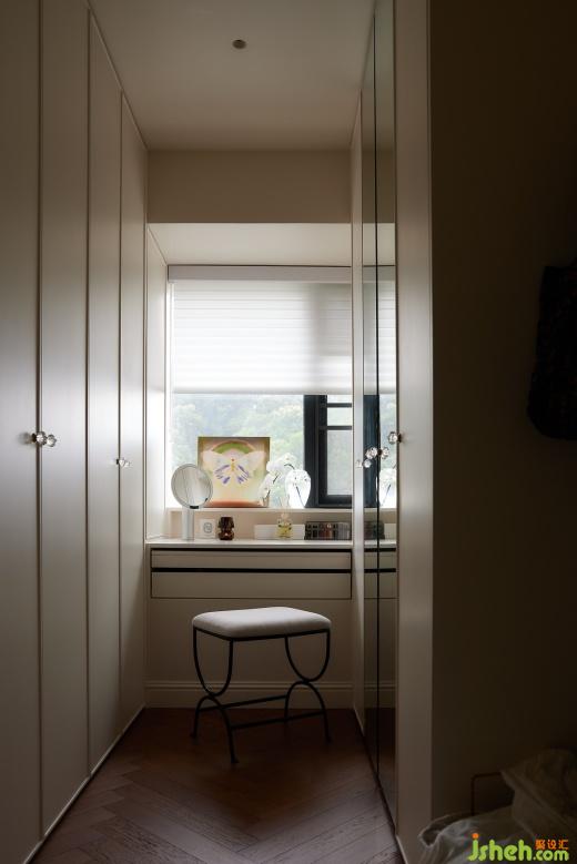 端景式梳妝臺(tái)讓功能更完整之余體現(xiàn)出對(duì)稱的結(jié)構(gòu)美感,不同形式的收納安放其中,整個(gè)衣帽間猶如一個(gè)被時(shí)光偏愛(ài)的秘密花園,演繹著優(yōu)雅與精致。