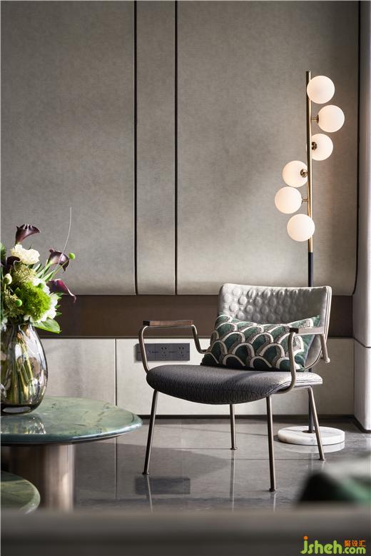 客廳寬闊通透,給家人自由的活動(dòng)空間,也有山水的靈氣,陽光的沐浴。艾未設(shè)計(jì)將圓潤(rùn)曲面的形態(tài)貫穿于整個(gè)空間的延續(xù),樣板間設(shè)計(jì)以柔和轉(zhuǎn)折的特點(diǎn)表現(xiàn)內(nèi)斂、含蓄的美。于微處的細(xì)節(jié)嵌鋼,讓全屋充滿精致的高級(jí)感。